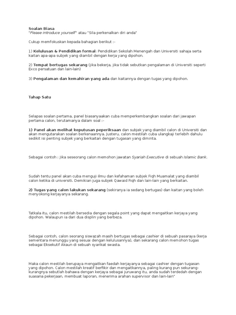 Soalan Interview Bank Islam Persoalan S